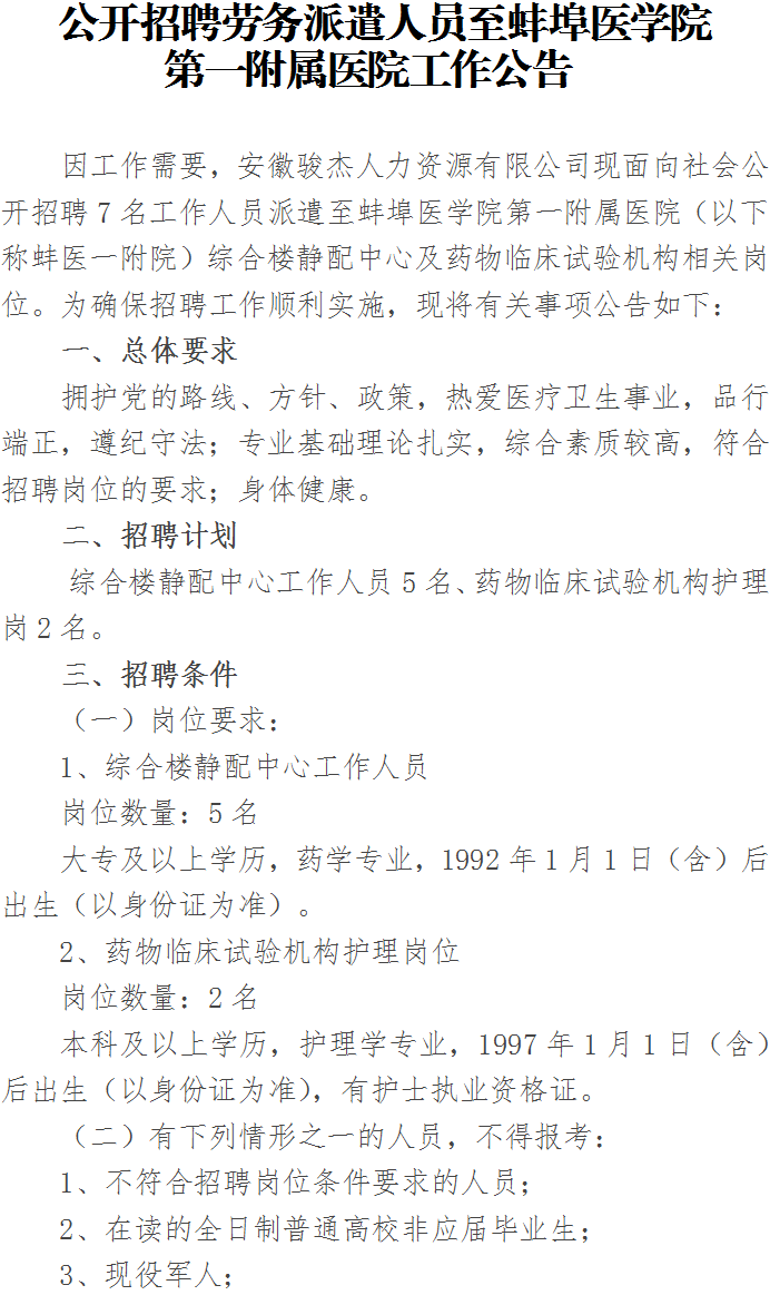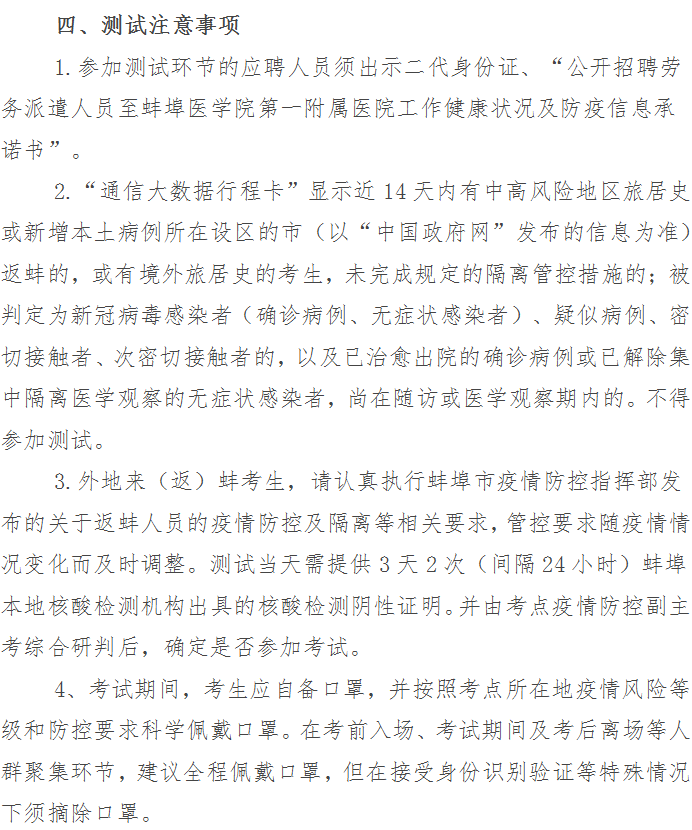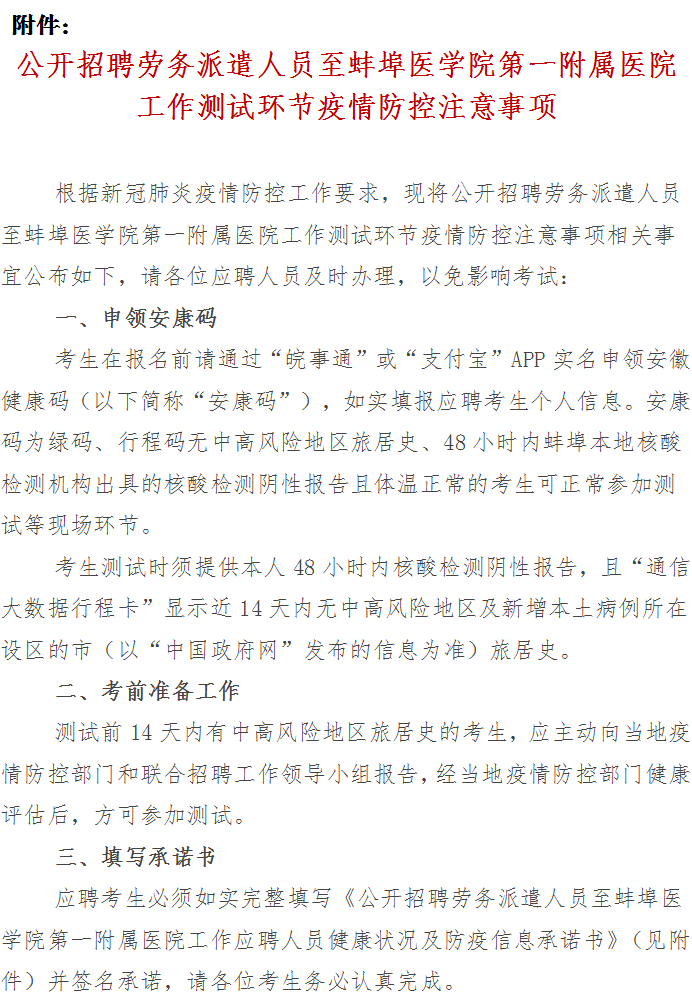 2022年公开招聘劳务派遣人员至蚌埠医学院第一附属医院工作公告