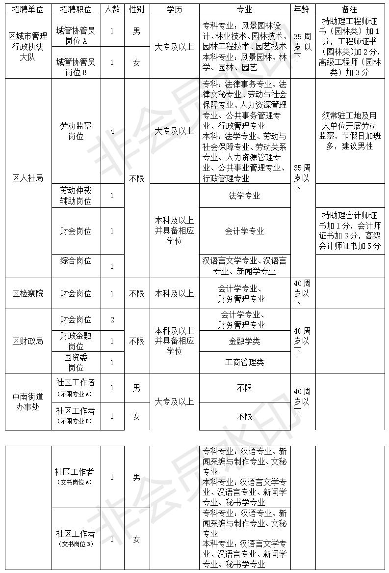 区城市管理行政执法大队2人、区人社局7人、区检察院1人、区财政局4人、中南街道办事处4人。