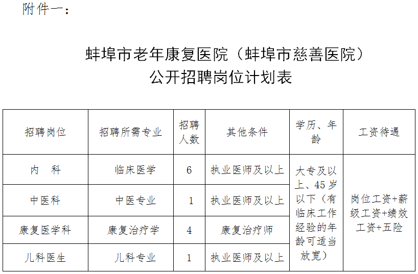 附件:1、蚌埠市老年康复医院(蚌埠市慈善医院)公开招聘岗位计划表