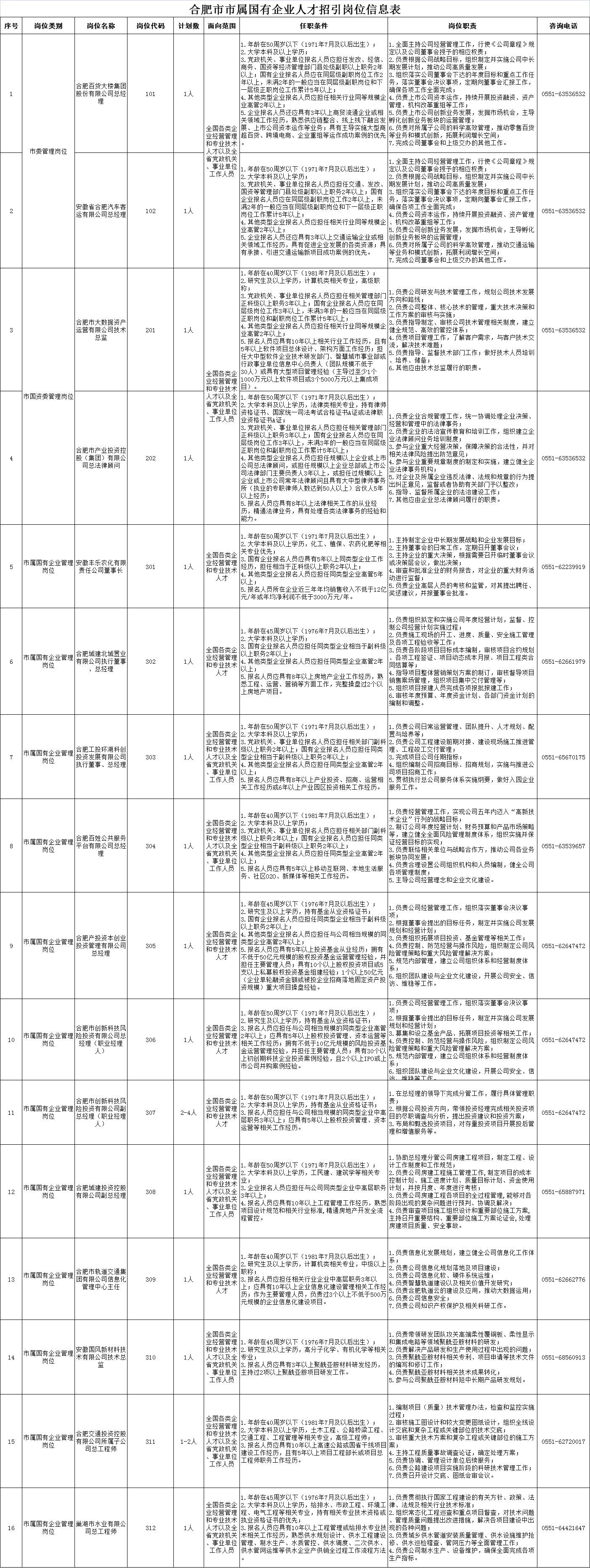 任职条件、岗位职责等信息详见附件《合肥市市属国有企业人才招引岗位信息表》。