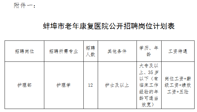 附件:1、蚌埠市老年康复医院公开招聘岗位计划表