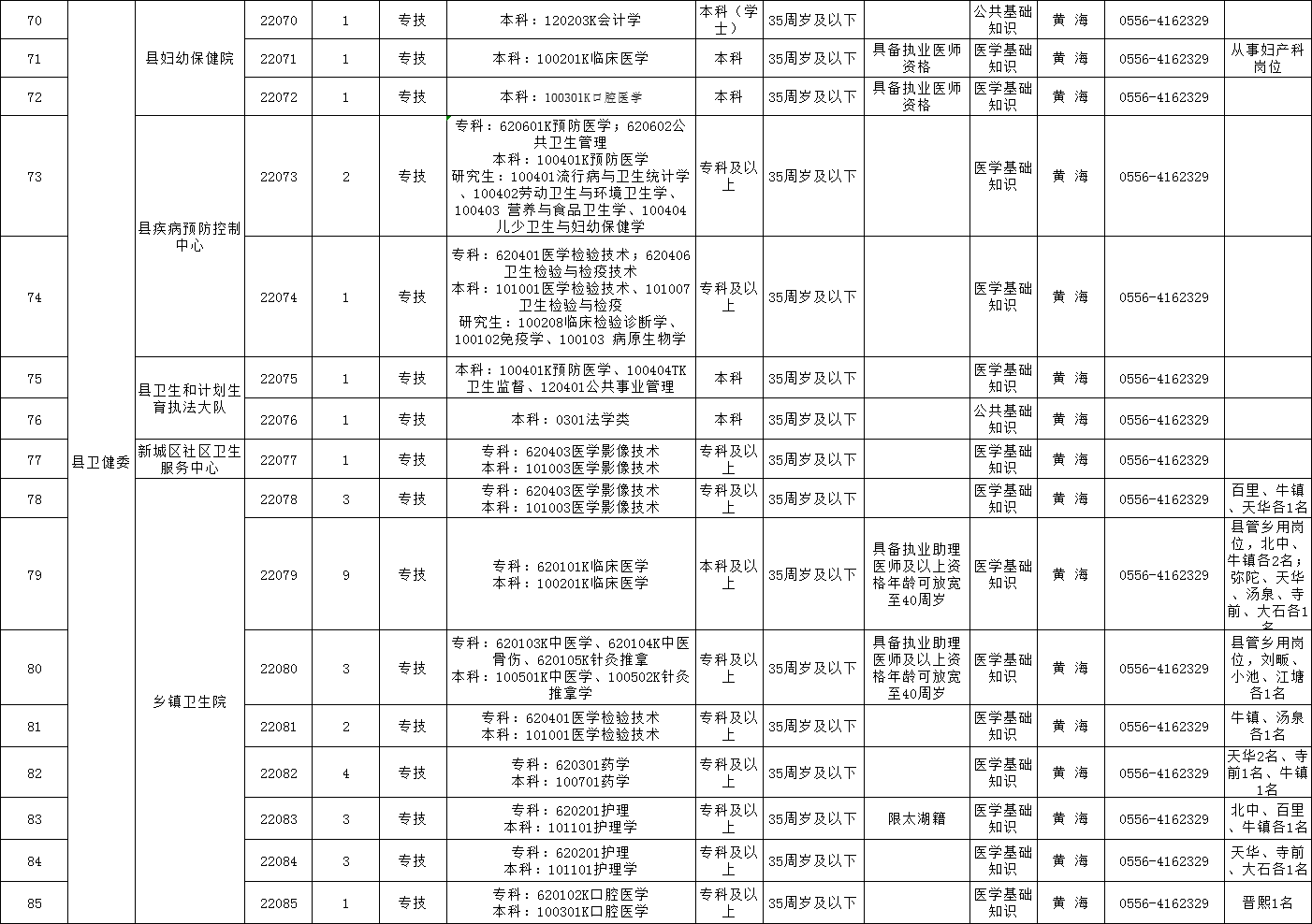 咨询电话:县人社局事业单位人事管理股 0556-4188332。