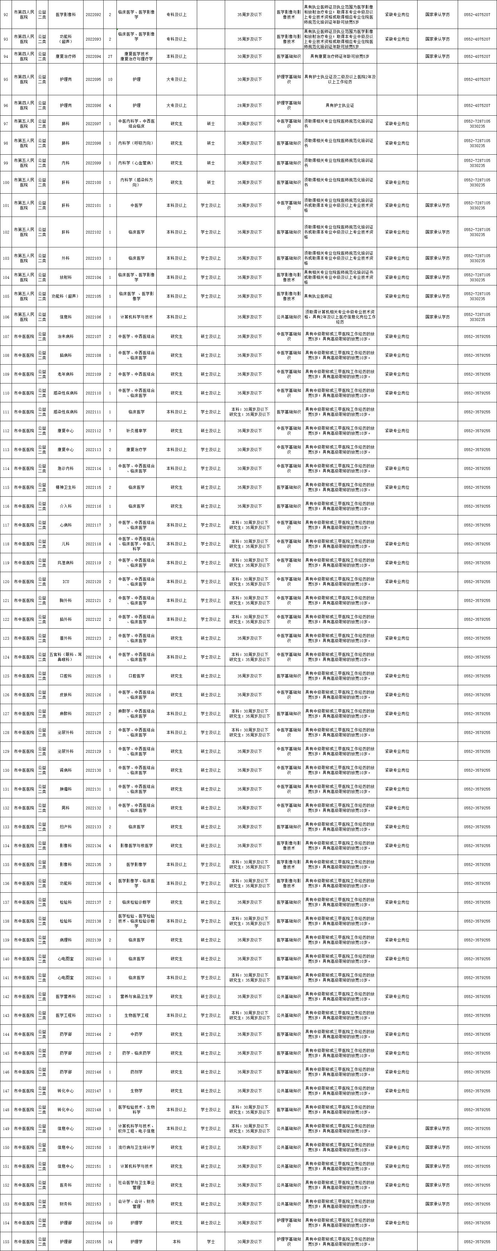 政策咨询电话: 0552—3110982(蚌埠市卫生健康委组织人事科)