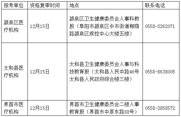 根据《安徽省基层医疗卫生专业技术人员公开招聘工作公告》规定,现将安徽省基层医疗卫生专业技术人员公开招聘阜阳考点资格复审递补人员予以公布(详见附件1)。