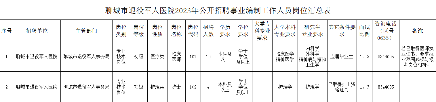 2023年聊城市退役军人医院公开招聘事业编制工作人员简章
