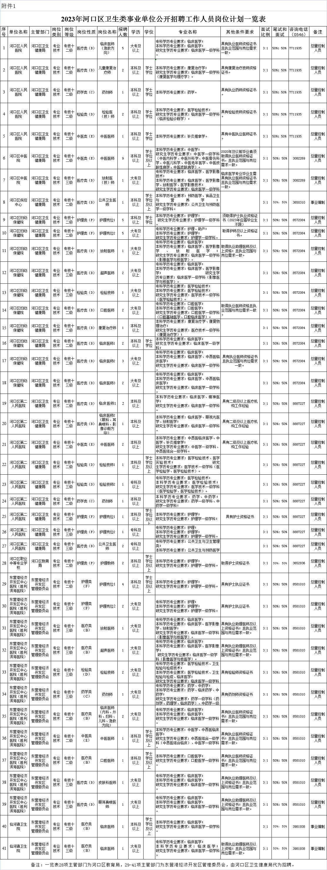 1.2023年河口区卫生类事业单位公开招聘工作人员岗位计划一览表