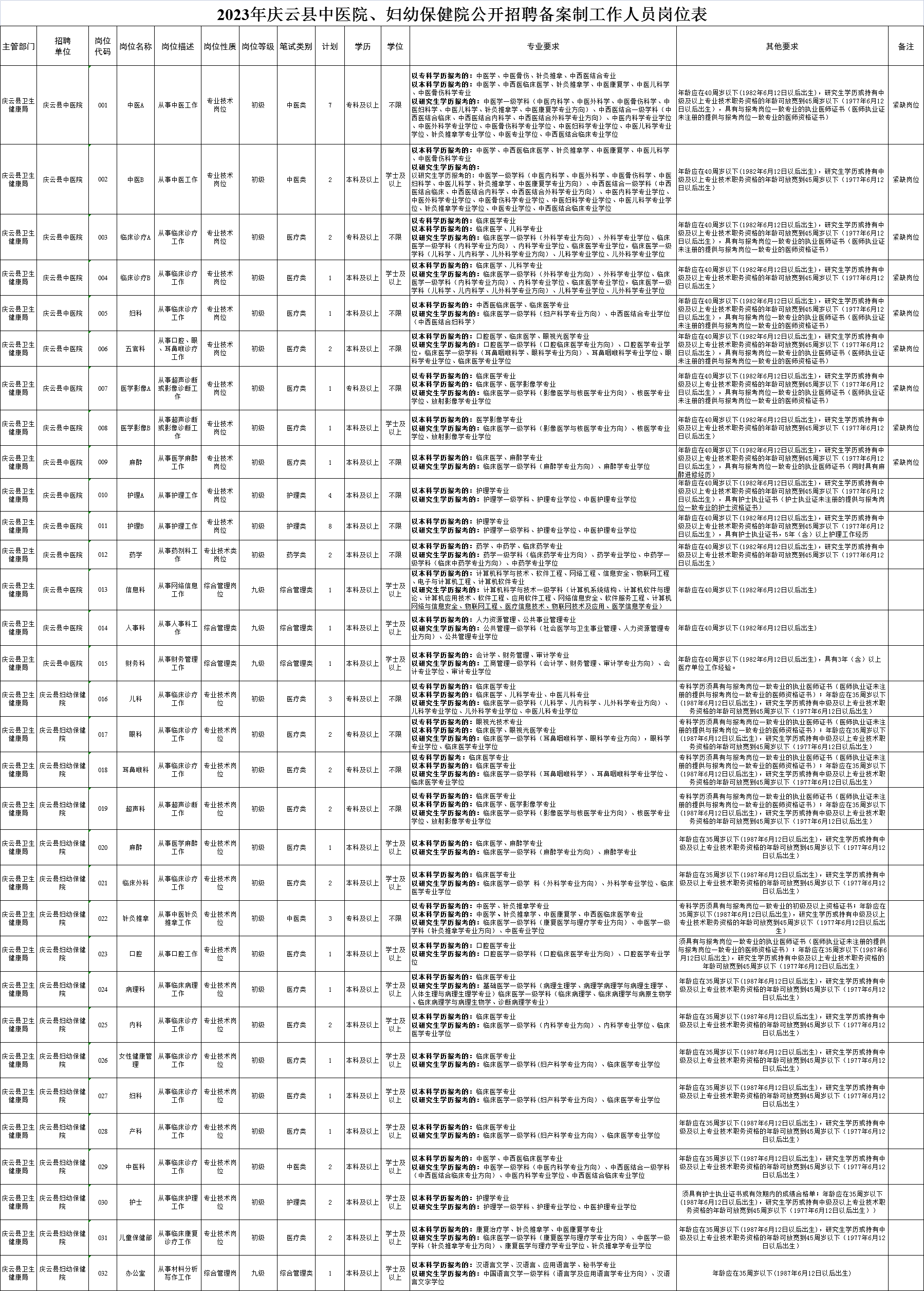 附件1:2023年庆云县中医院、妇幼保健院公开招聘备案制工作人员岗位表.xls