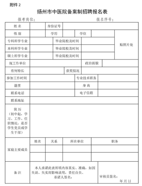 一、招聘条件 1、具有中华人民共和国国籍; 二、招聘程序 招聘工作按照发布招聘信息、报名、笔试及面试、体检、考察、公示和聘用等程序进行。 报名时间:2024年1月12日-26日17:00 报名方式: 电子邮箱投递(需填写附件2报名表,并将报名所需材料整体打包,以“姓名+招聘岗位代码+岗位名称”为标题发送至报名邮箱yzszyyrczp@126.com),具体材料文件顺序为:1.报名表,2.学历证书PDF或推荐表PDF(2024年毕业生需提供),3.学位证书PDF,4.资格证书PDF,5.规培证PDF/工作经历证明PDF,6.其他材料PDF(如培训证书),7.证件照。以上材料报名截止日期为2024年1月26日17:00,请考生按要求报送报名材料,如缺报名所需材料至此次报名信息无法登记,则报名无效。 国民教育序列普通高校2024年毕业生毕业证书(学位证书)取得时间;在国(境)外教学科研机构学习,与国(境)内国民教育序列普通高校2024年毕业生同期毕业的留学人员学位证书及教育部门学历认证材料取得时间为2024年7月31日及以前。 在招聘结果备案前,普通高校2024年毕业生须提供毕业学历(学位)证书原件及复印件,与国(境)内普通高校2024年毕业生同期毕业的留学人员须提供学位证书、教育部门学历认证材料原件及复印件。 除上述情形外,招聘公告及岗位规定的报考资格条件,应聘人员需在2024年1月12日及以前具备。 三、聘后管理及待遇 聘用人员实行6个月试用期制度(初次就业的工作人员与医院订立的聘用合同期限3年以上的,试用期为12个月)。试用期满考核合格,予以定岗定级,考核不合格者,取消聘用资格,解除聘用合同。 四、纪律监督 未尽事宜,按扬州市卫生健康委员会及扬州市中医院相关规定执行,解释权属于扬州市中医院。