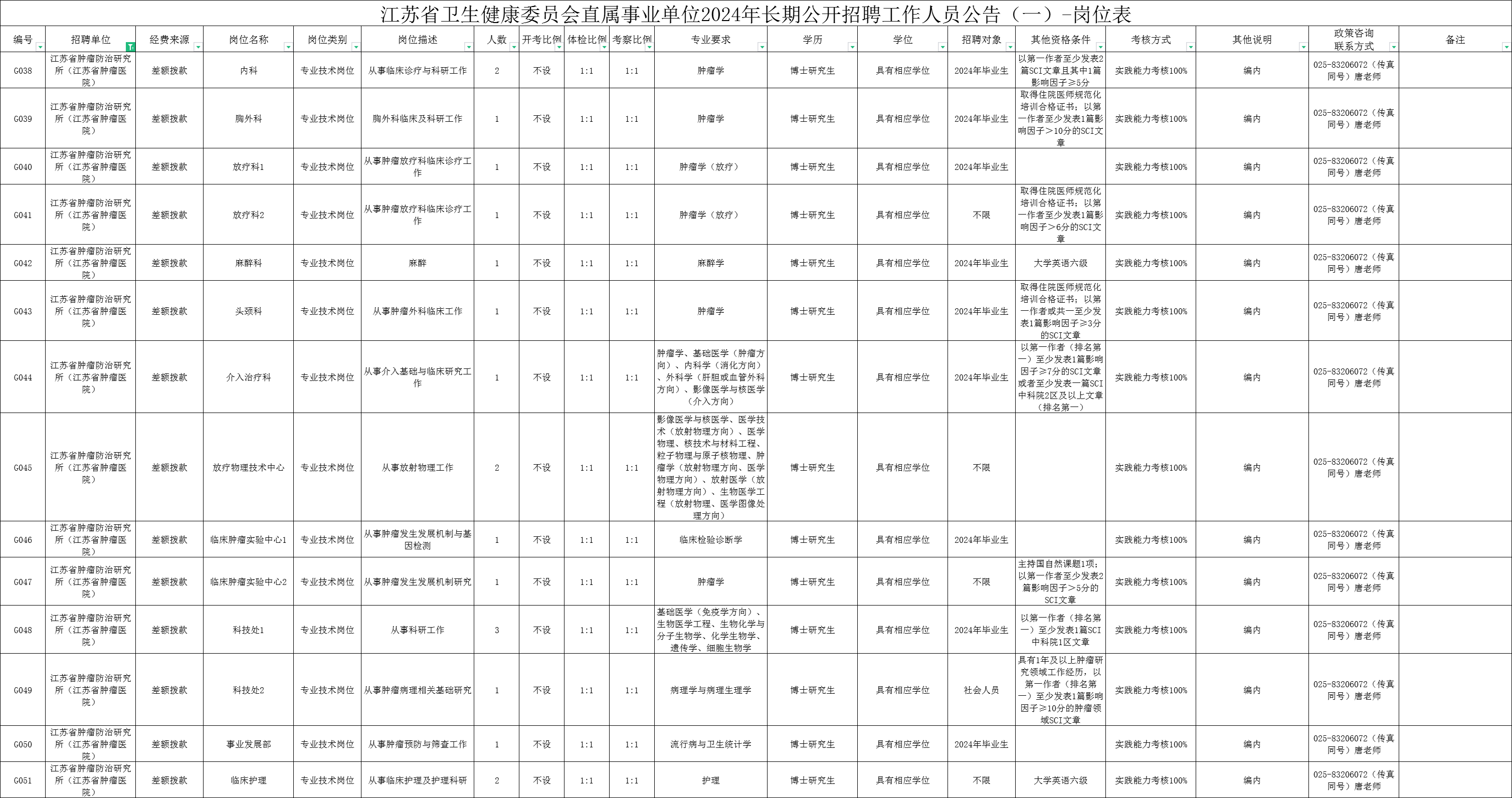 附件:江苏省卫生健康委员会直属事业单位2024年长期公开招聘工作人员岗位表