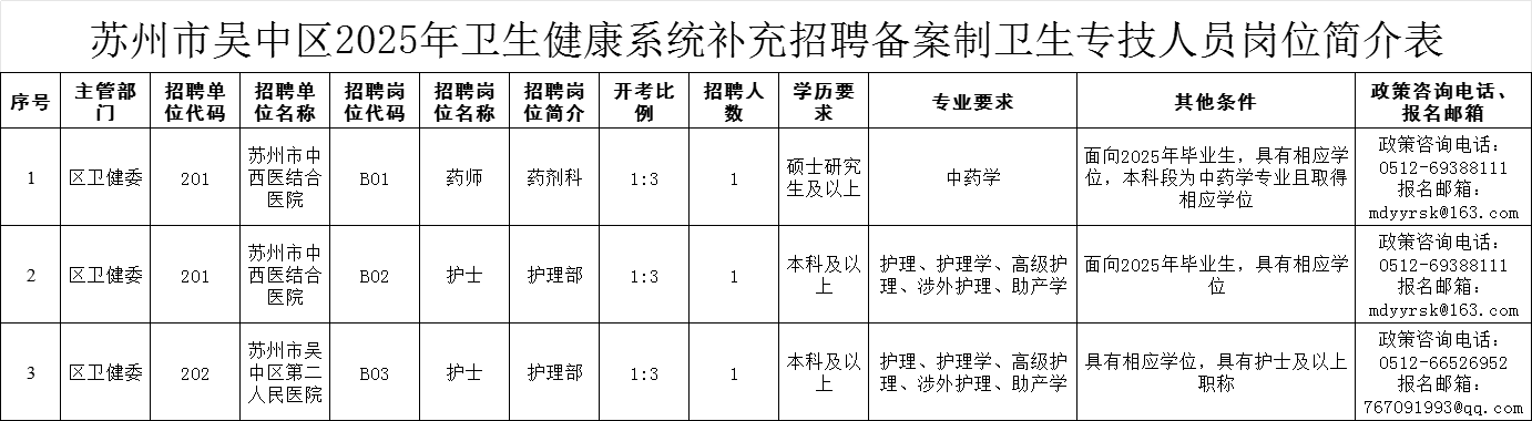 1.苏州市吴中区2025年卫生健康系统事业单位补充招聘卫生专技人员岗位简介表
