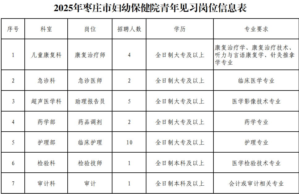 根据《山东省人力资源和社会保障厅、山东省财政厅关于印发〈山东省就业见习工作实施细则〉的通知》(鲁人社字〔2024〕74号)文件精神,现根据全县卫生健康系统工作实际,经研究确定,面向社会招募医学类高校毕业生到部分医疗卫生事业单位见习。现将有关事项通知如下:
