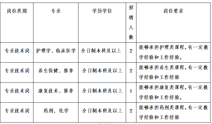 4.研究生学历、“双一流”院校毕业生或具有高校教学、医院工作经历、中职以上教师资格证、高级职称者优先。
