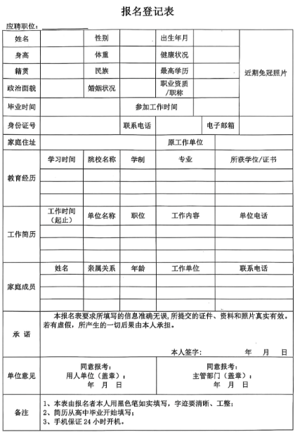 (7)本人签字填写完整的报名表(报名表详见附件1)。