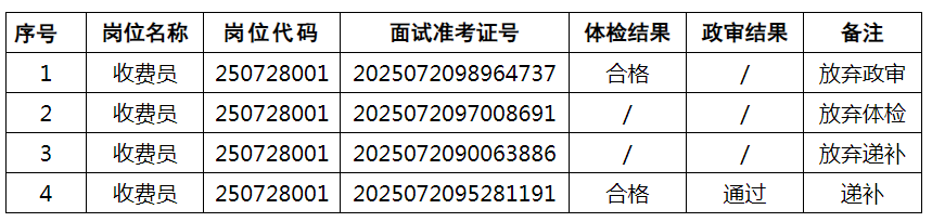 因工作需要,芜湖市人才发展集团有限公司受芜湖市第四人民医院委托,面向社会公开招聘派遣制员工。经报名、资格初审、笔试、资格复审、面试、体检、政审考察,现将体检及政审结果(二)公告如下: