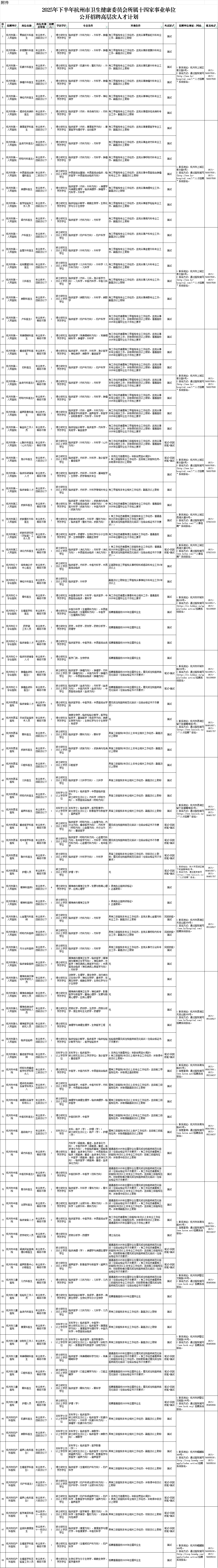附件:2025年下半年杭州市卫生健康委员会所属十四家事业单位公开招聘高层次人才计划