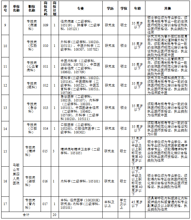 本次招聘计划共20名,具体岗位计划详见附件1。