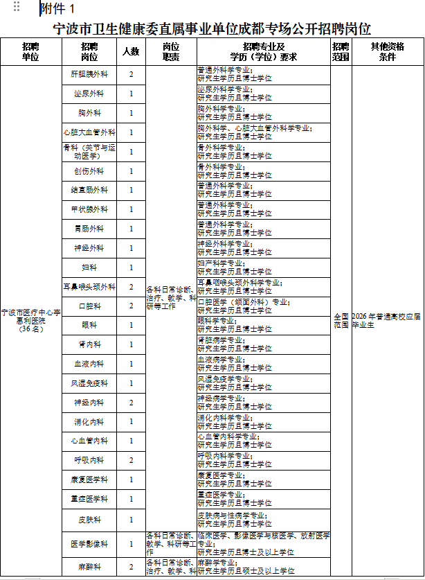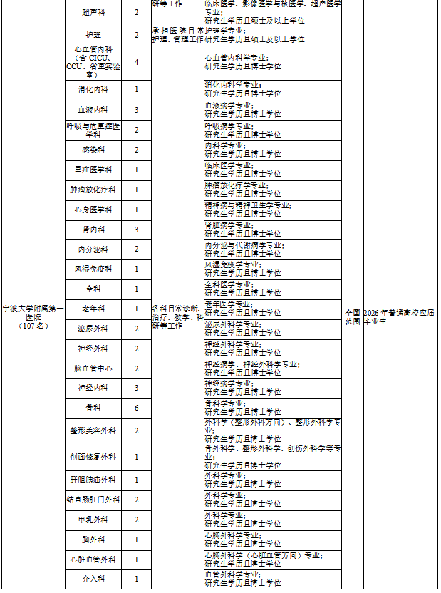(2)宁波大学附属第一医院报名链接:https://isap.nbdyyy.com:20247/cdzp/;联系电话:0574—87304032,联系人:张老师。