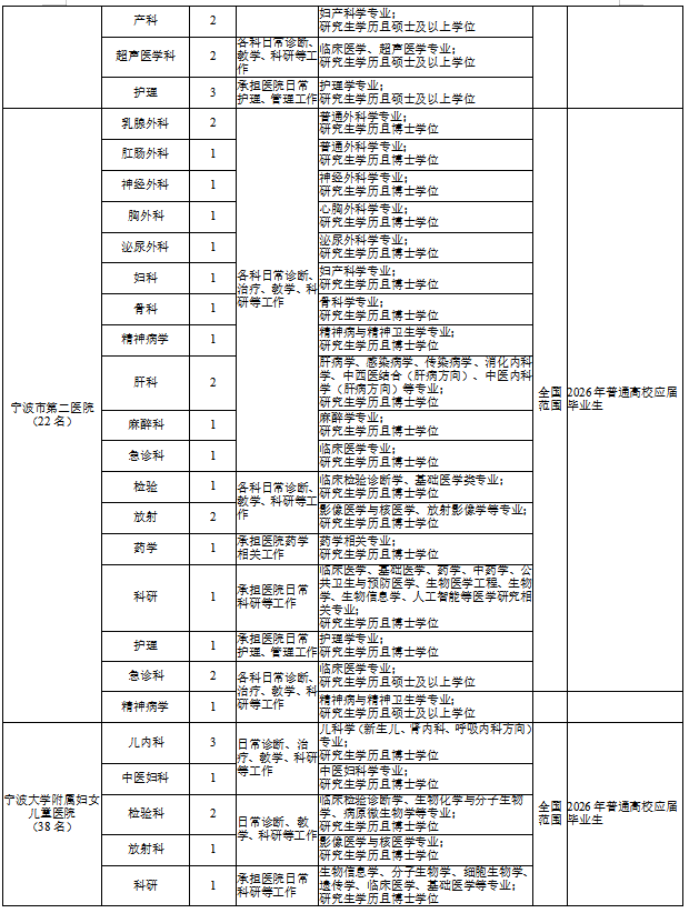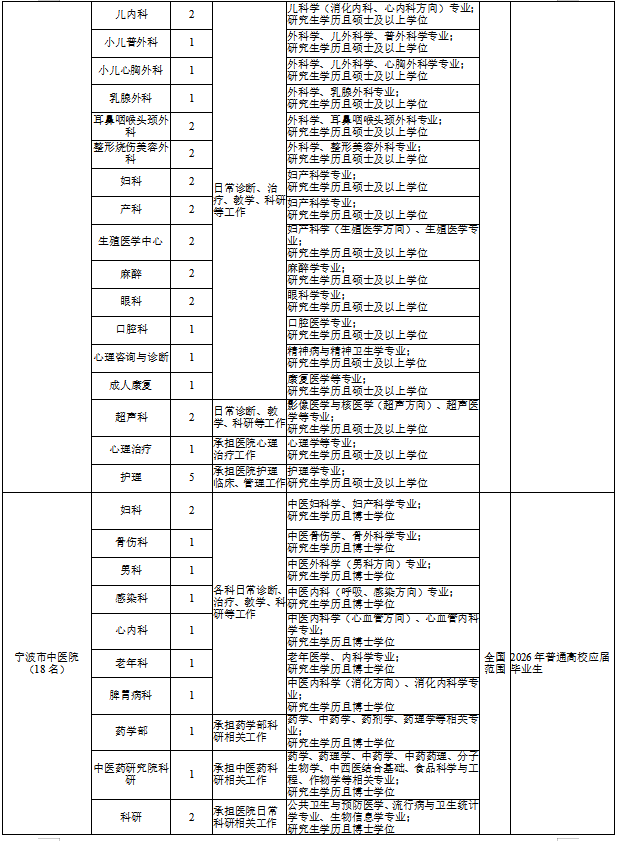 (4)宁波大学附属妇女儿童医院报名链接:https://personnel.nbfeyy.com:8383/zp/;联系电话:0574—87083368,联系人:余老师。