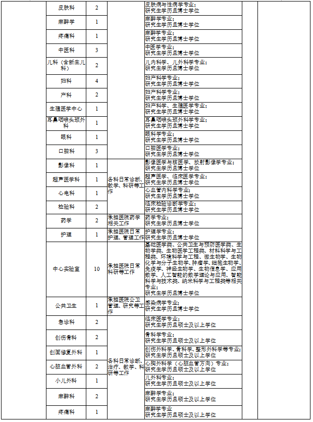 4、招聘条件为博士研究生的岗位按照实际应聘人数开考。报考临床类医技类岗位的应聘人数与招聘计划数之比不能低于2:1,在规定的报名时间内,应聘人数和招聘计划数比例不足2:1的,将核减该岗位拟招聘人数或取消该岗位招聘(同一岗位招聘指标为数个的,相应核减招聘指标,招聘指标为1个的予以取消)。
