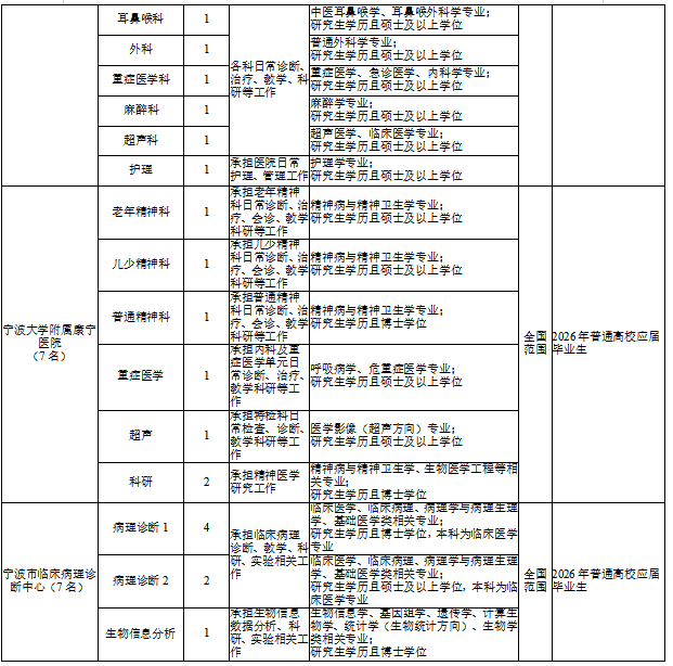 (6)宁波大学附属康宁医院报名链接:https://icntwdbo8ool.feishu.cn/share/base/form/shrcno1Ygc6EcNsDopWBBWDLt2f;联系电话:0574—26302512;联系人:姜老师。