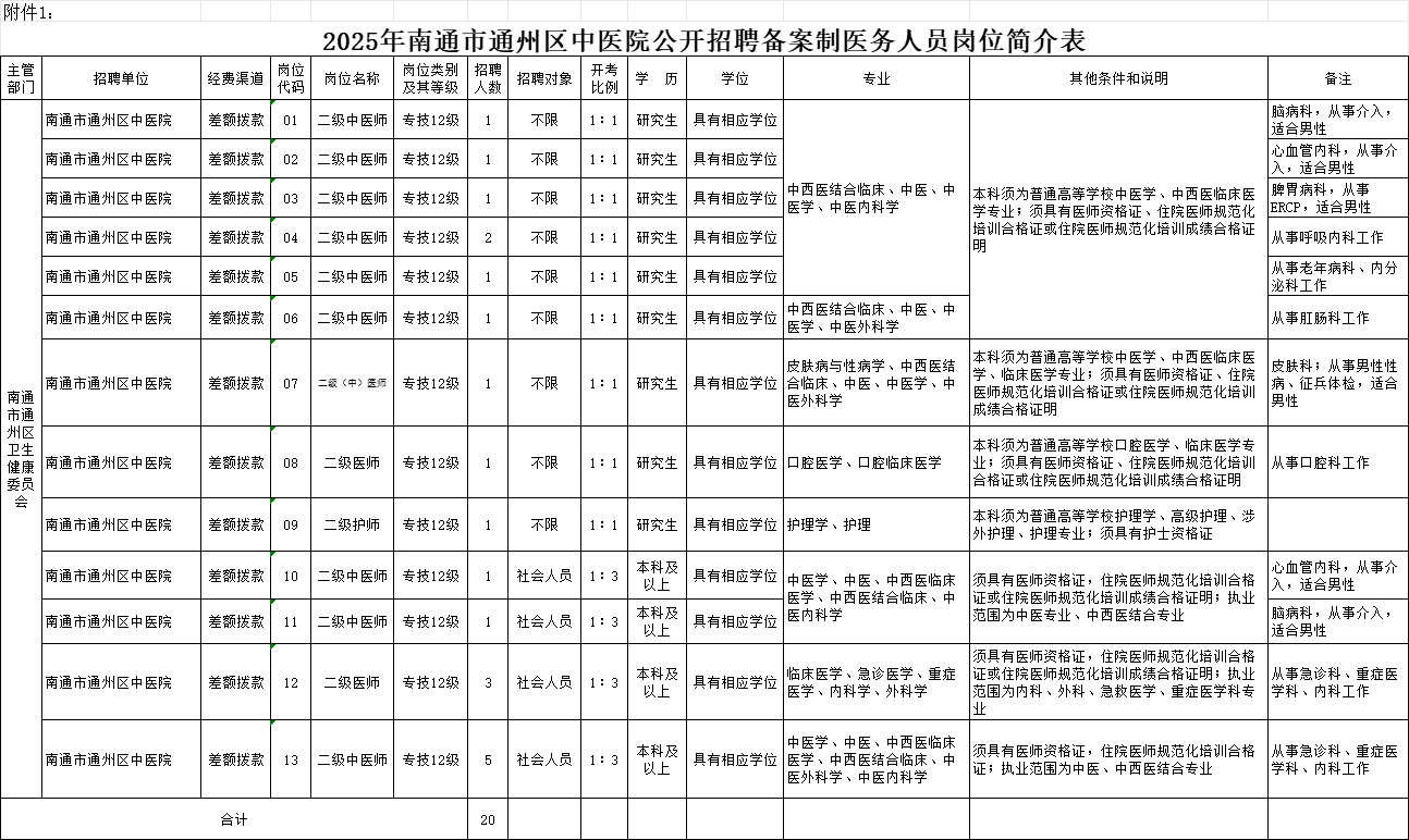 附件:1.2025年南通市通州区中医院公开招聘备案制医务人员岗位简介表