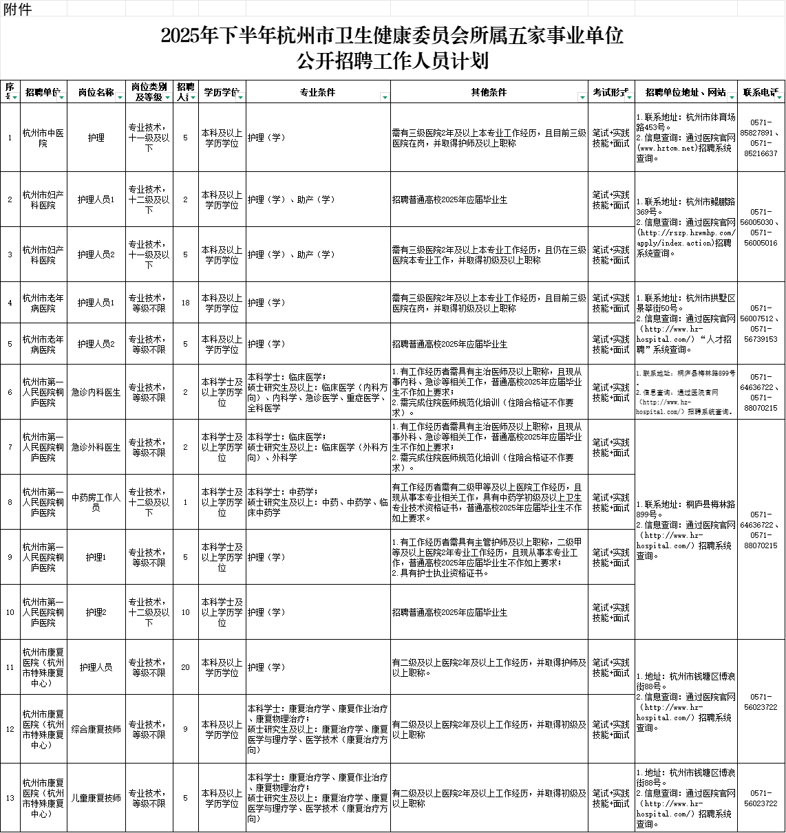 附件:2025年下半年杭州市卫生健康委员会所属五家事业单位公开招聘工作人员计划