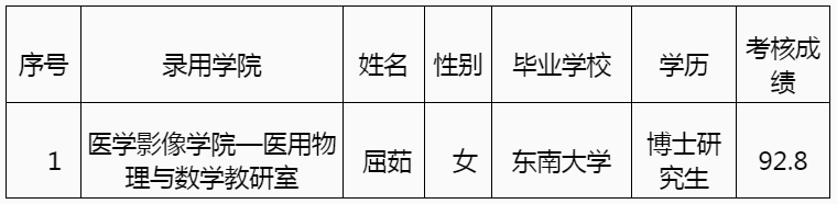 按照招聘工作要求,我校开展了2025年第八批博士公开招聘工作。经信息发布、网上报名、资格审查、考核、学校研究等环节,拟录用屈茹。现将人员有关情况进行公示(见附表)。