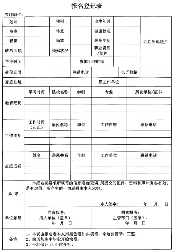 (7)本人签字填写完整的报名表(报名表详见附件1)。