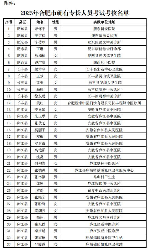 根据安徽省中医药管理局《关于2025年安徽省传统医学师承(专长)人员考核考试工作的通知》等要求,现就2025年合肥市传统医学确有专长人员考试考核工作具体事项通知如下: