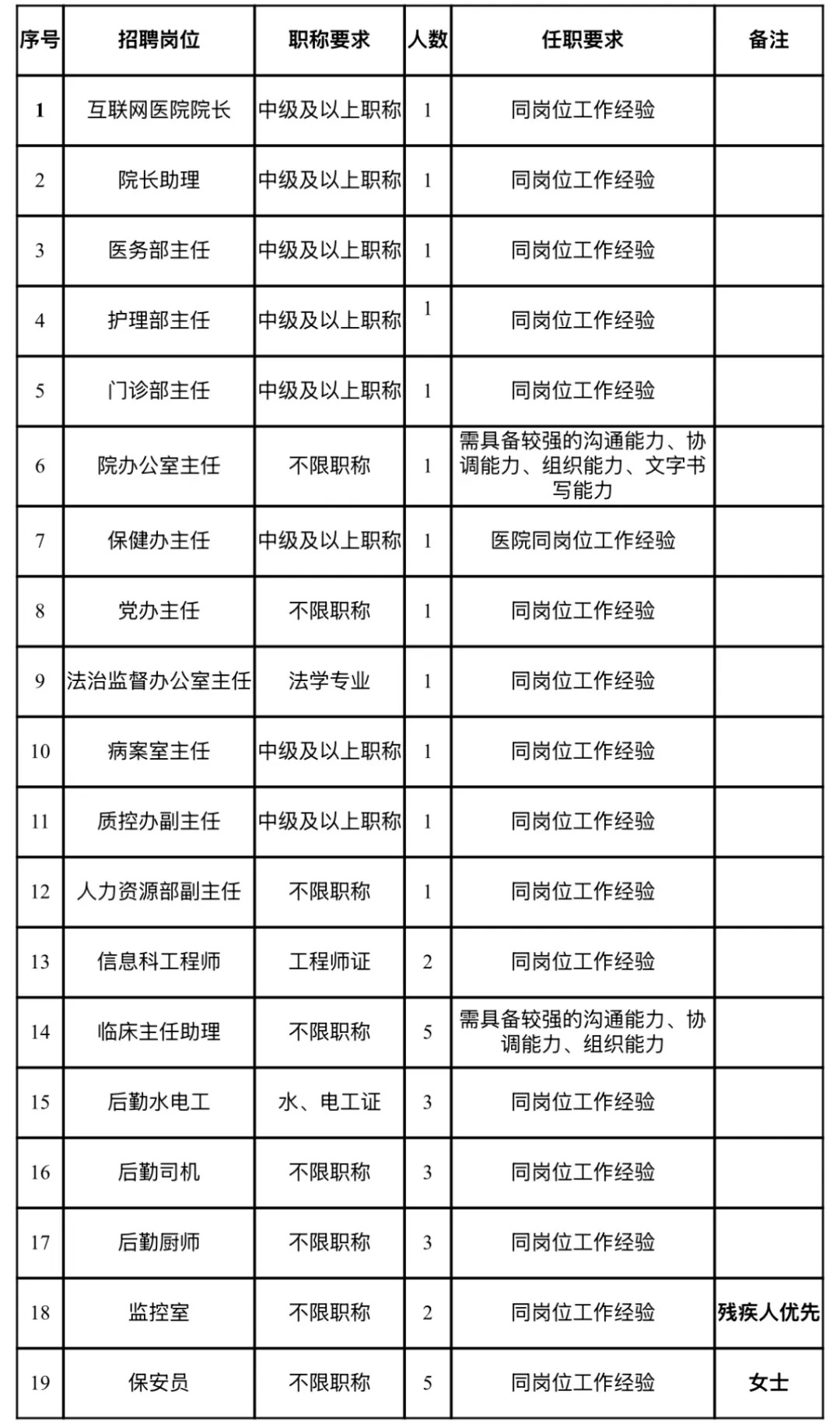 根据医院发展需要,现面向社会公开招聘以下岗位人才: