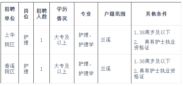 根据医疗卫生工作需要,兰溪市中医院医共体面向社会公开招聘编外工作人员2名,现将有关事项公告如下: