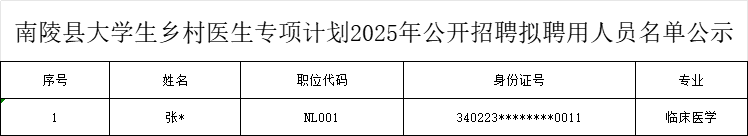 附件:南陵县大学生乡村医生专项计划2025年公开招聘拟聘用人员名单公示.xlsx
