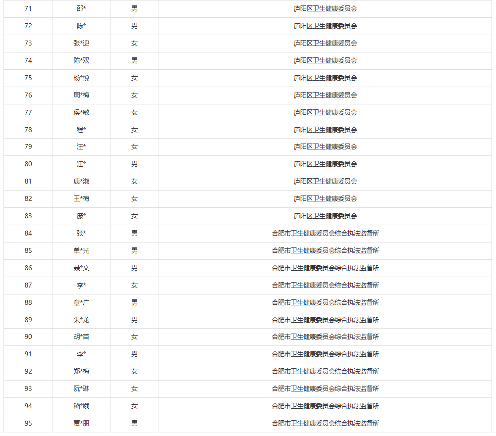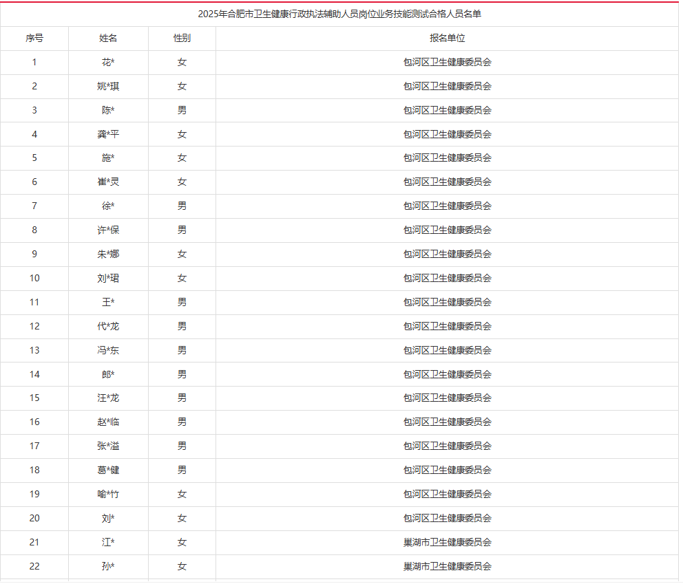 附件:2025年合肥市卫生健康行政执法辅助人员岗位技能培训考试合格人员名单