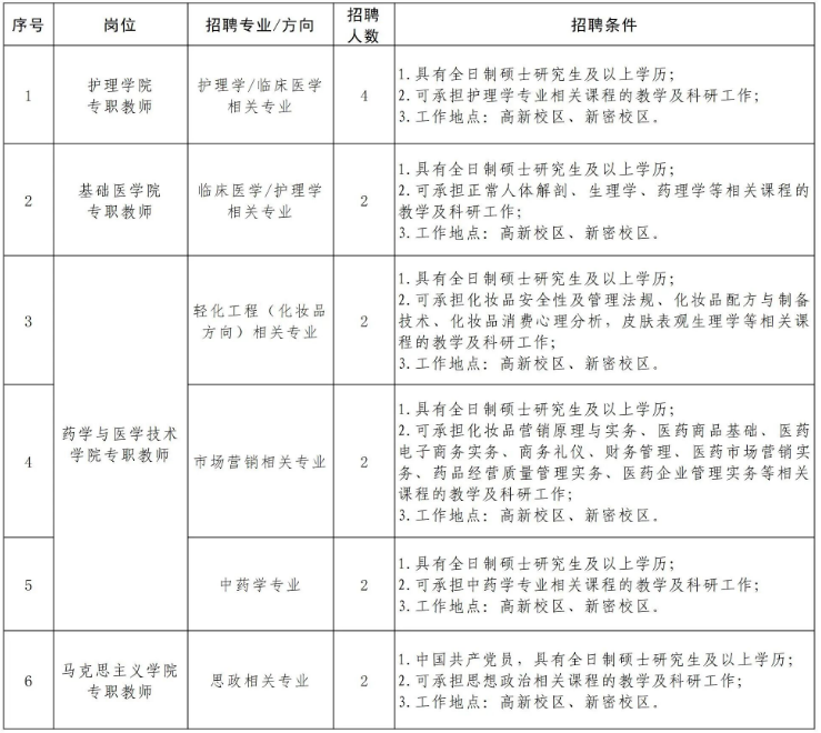 二、招聘基本条件 1.具有中华人民共和国国籍。 2.拥护中华人民共和国宪法。 3.遵纪守法、品行端正,具有良好的职业道德。 4.具有正常履行岗位职责的素质和身体条件。 5.具有履行岗位职责所需的文化程度、业务知识和工作能力。 三、招聘岗位及专业要求 四、注意事项 1.应聘人员所提交的各项应聘材料须真实、准确、有效,如有信息不符或弄虚作假的,一经查实取消应聘资格,已签合同视作无效。 2.应聘人员应确保联系方式准确、畅通。 3.聘用人员须在学校要求的时间内提交材料、办理入职手续。逾期未报到者,将不再保留聘用资格。 4.其他事项:招聘报名及面试不收取任何费用,谨防受骗! 五、联系方式 学校地址:高新校区(郑州市化工路与西四环交汇处西一百米) 联 系 人:李老师 王老师 联系电话:0371-67831960 电子邮箱:zzhhrsc@126.com 工作时间:8:00-12:00、14:30-17:30 报名截止时间:2025年12月15日 招聘报名可以通过邮箱投递简历,也可微信扫描下方二维码填写报名信息。邮箱投递简历邮件主题统一命名为:xx(应聘岗位)—xx(专业)—xx(学历)—xx(姓名)—xx(毕业时间)—xx(目前所在地)
