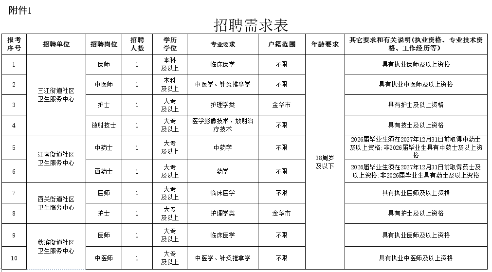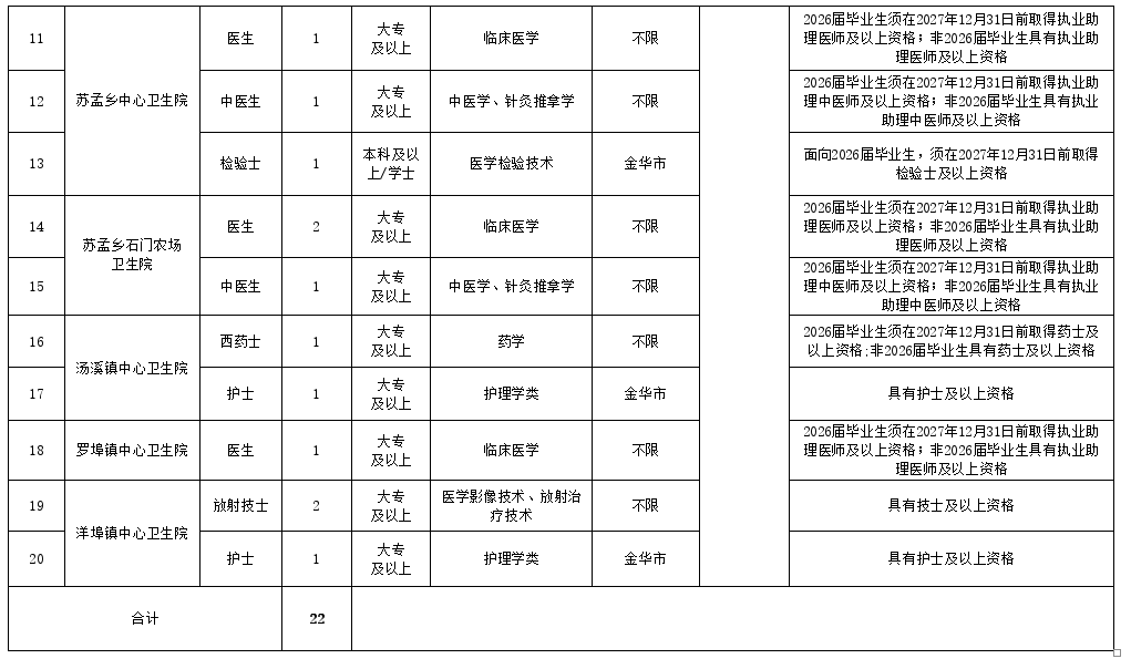 因工作需要,金华经济技术开发区基层医疗卫生单位面向社会公开招聘编外合同制工作人员22名。具体事项如下: