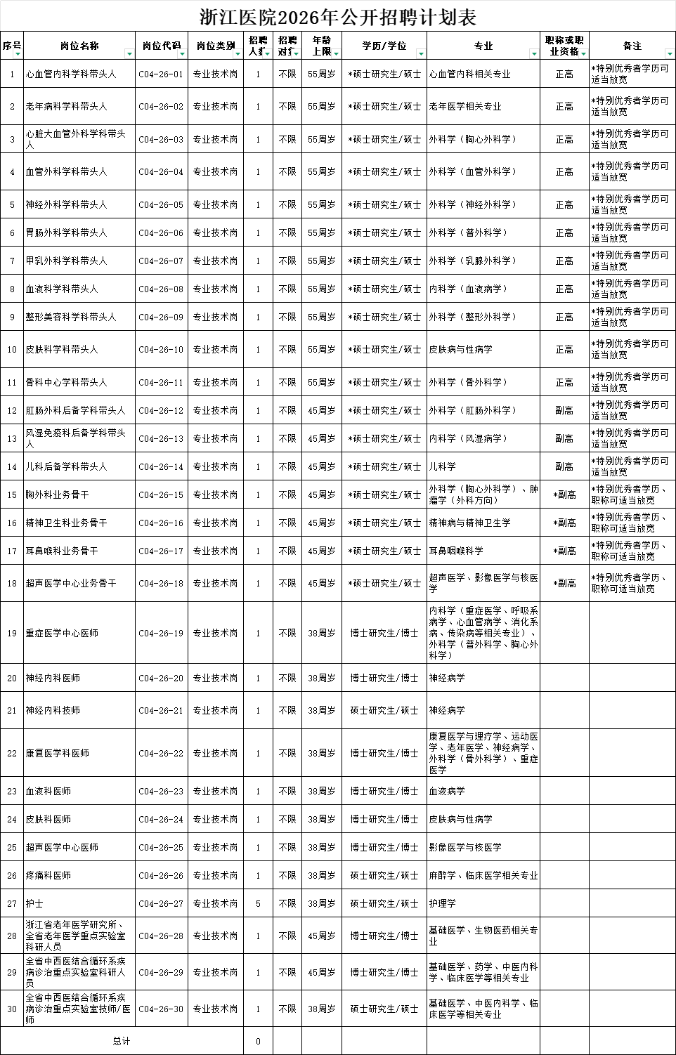 本批次招聘需求为30个岗位34人。岗位名称、招聘人数及具体要求见招聘计划表(附件)。
