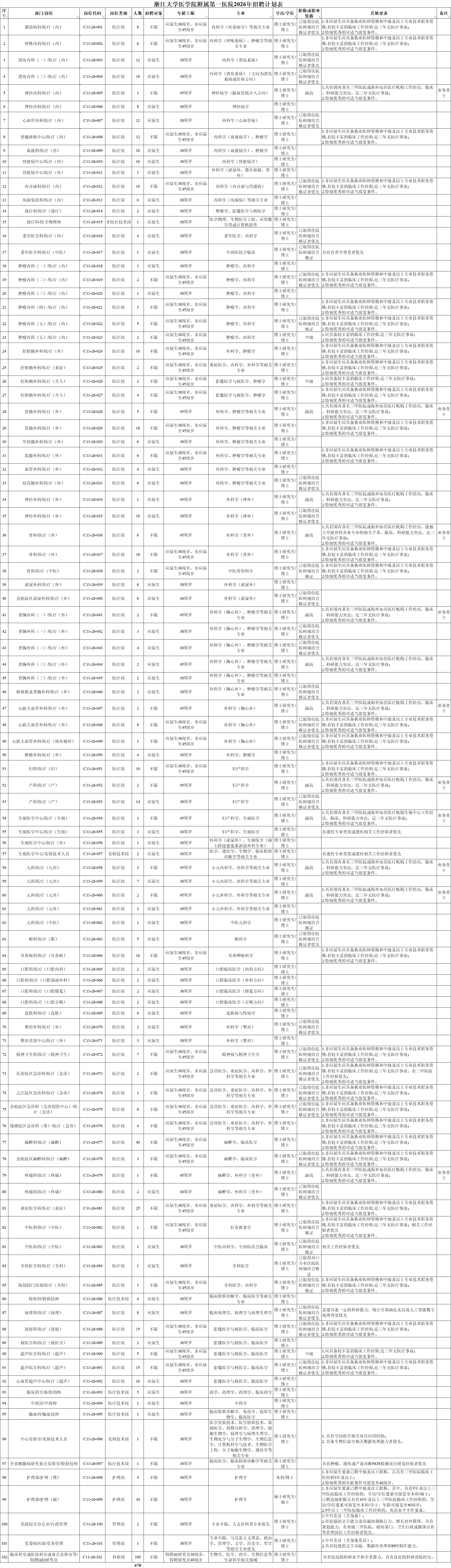 附件:浙江大学医学院附属第一医院2026年招聘计划表.xls
