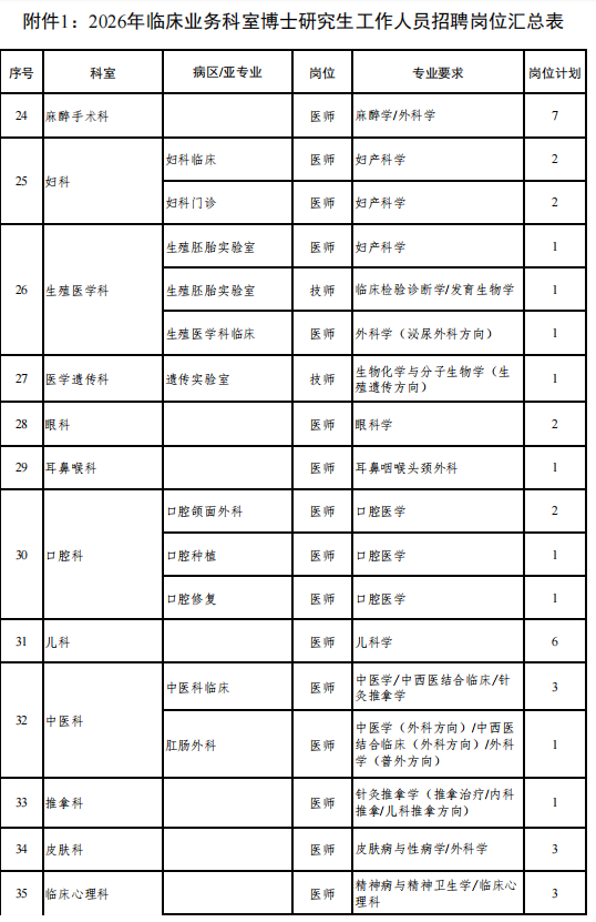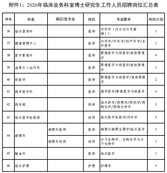附件【附件1:2026年临床业务科室博士研究生工作人员招聘岗位计划表.pdf】