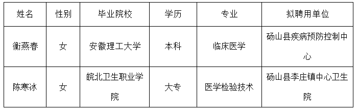 【拟用公示】2025年宿州砀山县卫健系统公开招聘拟聘用公示(第二批次)