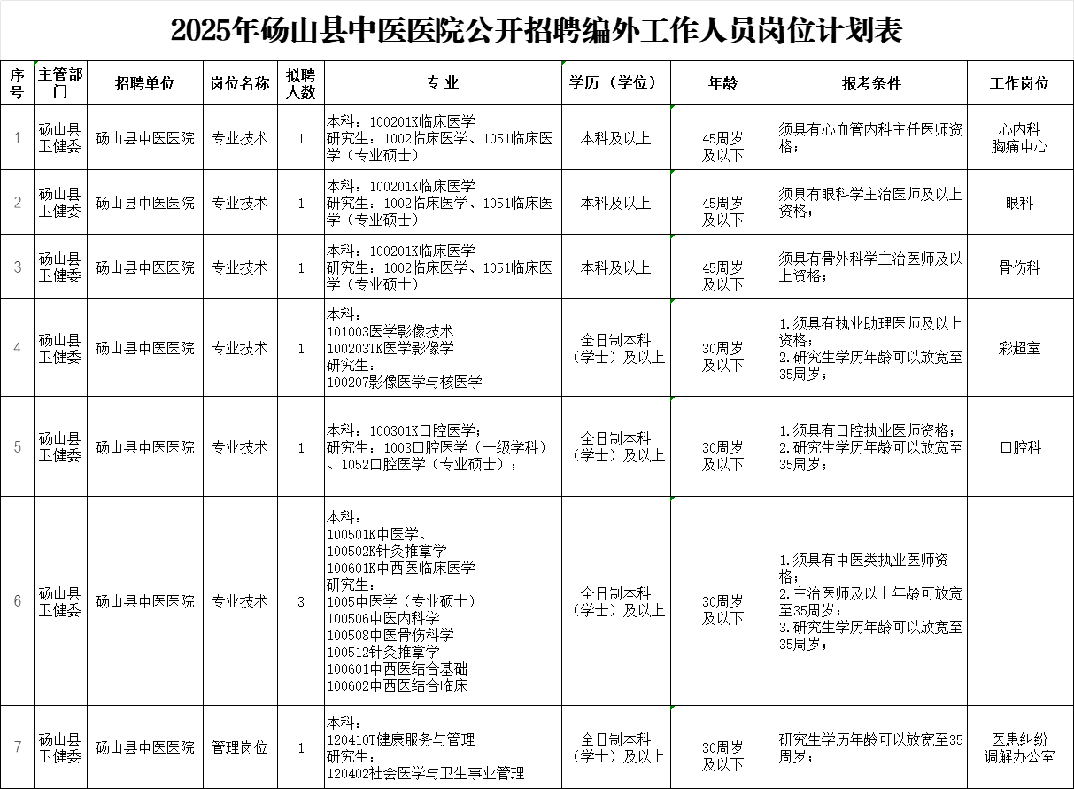 为促进我县卫生事业发展,加强人才队伍建设,着力提升服务能力,现将2025年砀山县中医医院公开招聘编外工作人员有关事项公告如下: