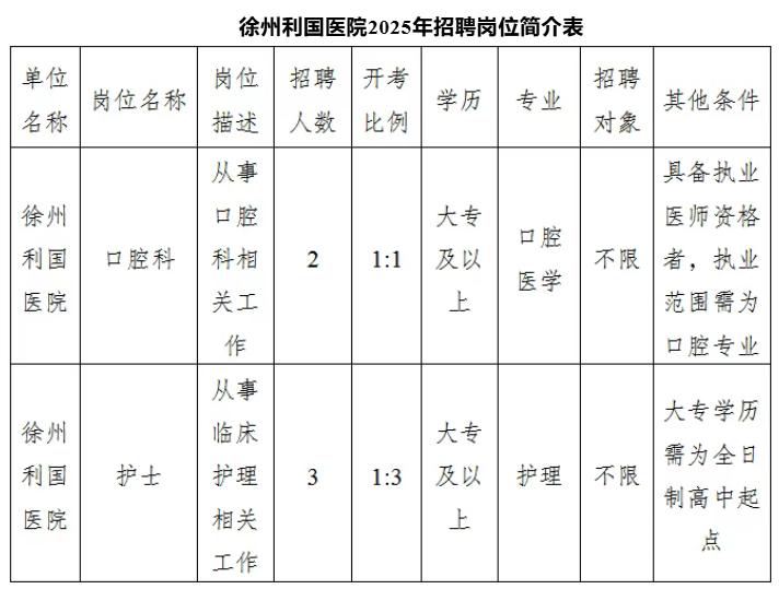 (三)报名地点:徐州利国医院医技楼二楼人事科。