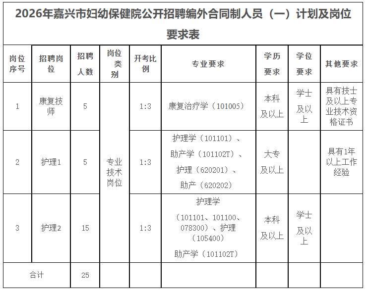 因医院业务发展需要,经研究,决定公开招聘编外合同制工作人员25名,现将公开招聘有关事项公告如下: