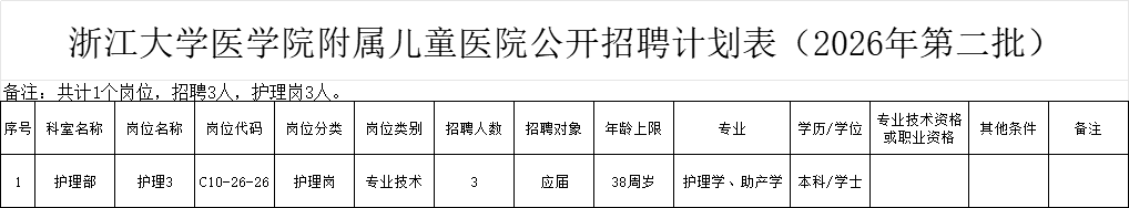 附件:浙江大学医学院附属儿童医院公开招聘计划表(2026年第二批)