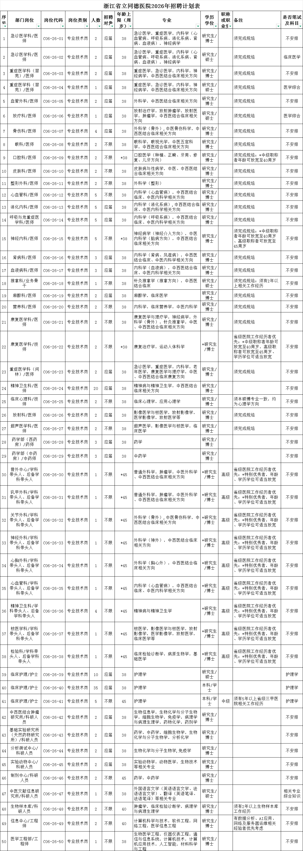 招聘岗位经本次限时集中报名、组织遴选并确定拟聘人员后,尚有空缺的医、药、技、护、科研等专业技术岗位,纳入浙江省省属事业单位特殊专业技术岗位招聘目录,在2026年度内继续招聘。