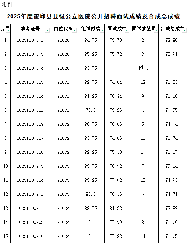 附件:2025年度霍邱县县级公立医院公开招聘面试成绩及合成总成绩.xls
