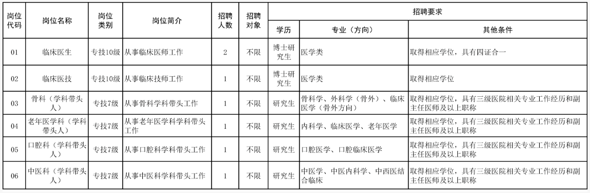 长期招聘岗位7名(进编)卫生健康委统招岗位(不进编)