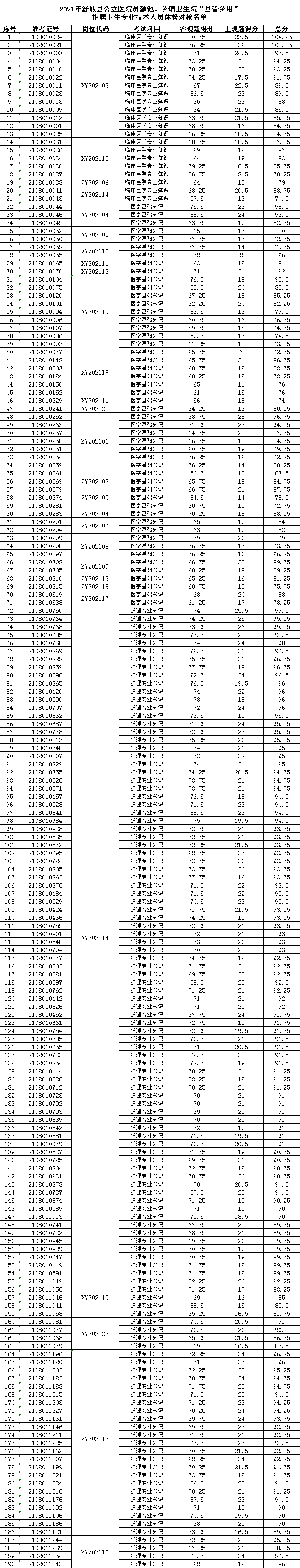 附件1:2021年度舒城县县级公立医院员额池和乡镇卫生院“县管乡用”公开招聘专业技术人员体检对象名单.xls