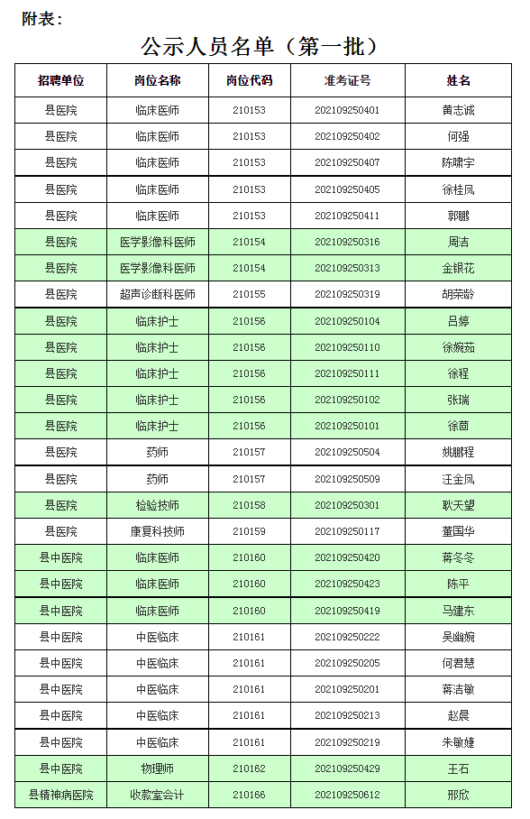 根据《庐江县级公立医院2021年公开招聘社会化用人公告》规定,经考试、考察等程序,现对拟聘用人选(第一批)予以公示(共27人,名单附后),公示期7天(2021年11月10日至11月16日)。