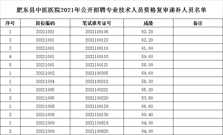 详见附件《肥东县中医医院2021年公开招聘专业技术人员资格复审递补人员名单》
