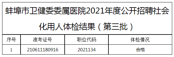 【体检结果】关于公布蚌埠市卫健委委属医院2021年度公开招聘社会化用人体检结果的公告(第三批)